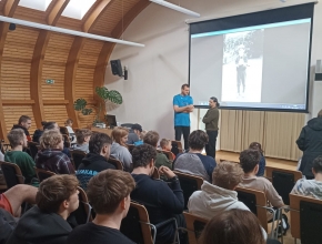 Dne 19.11. se v odpoledních hodinách v Aule naší školy uskutečnila interaktivní přednáška Lukáše Krásy. Přednáška byla finální a závěrečnou akcí projektu s názvem "Pojďte s náma na ryby" – který třída E 3 - oboru Vodohospodář, řeší již od minulého školního roku (za podpory Nadace VIA) a zahrnovala mimo jiné akci edukačně prožitkového charakteru pro děti z malotřídní školy v Břilicích v měsíci květnu.