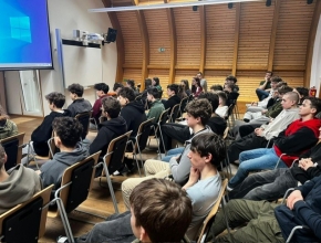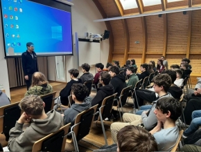 V rámci prevence rizikového chování spojeného s užíváním návykových látek se žáci třídy E1 a 1.A a 1.B zúčastnili 12. února přednášky s pracovníkem Krajského ředitelství PČR Jihočeského kraje por. Bajcurou.